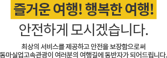 저희 유한회사 동마실업고속관광은 최선의 노력으로 고객 만족을 위하여 책임을 다하겠습니다.